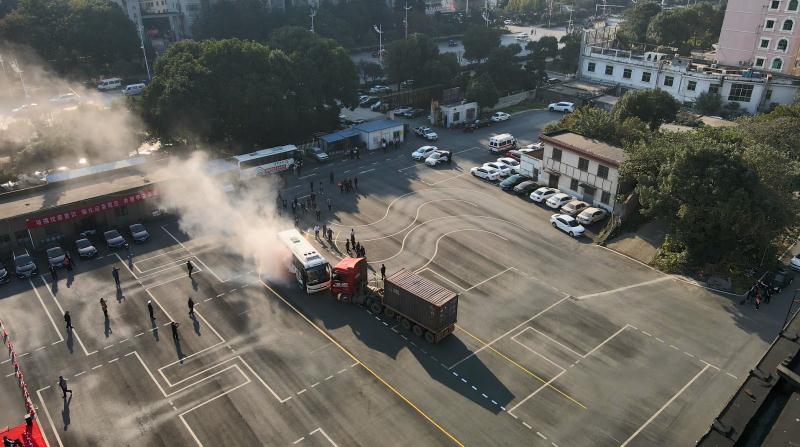 2020年11月13日下午,湖南龙骧神驰运输集团道路交通运输应急组织指挥体系暨反恐防暴、交通事故应急救援综合安全演练在湘运驾校训练场隆重举行。