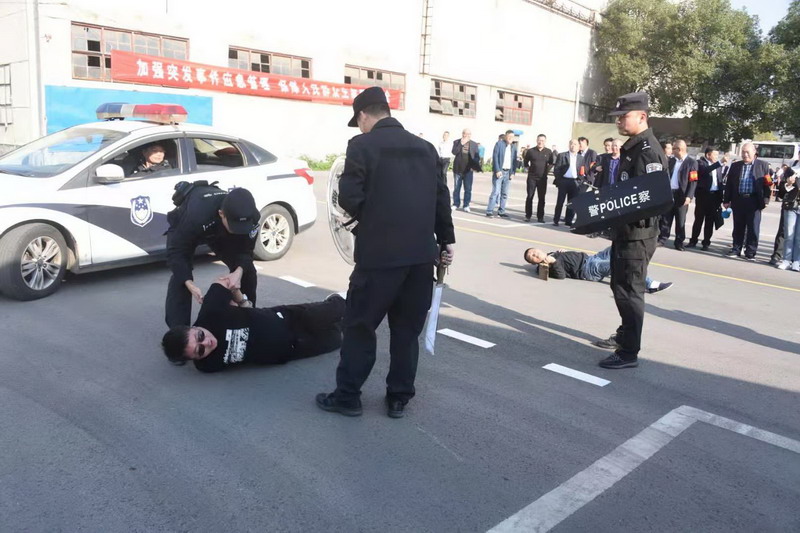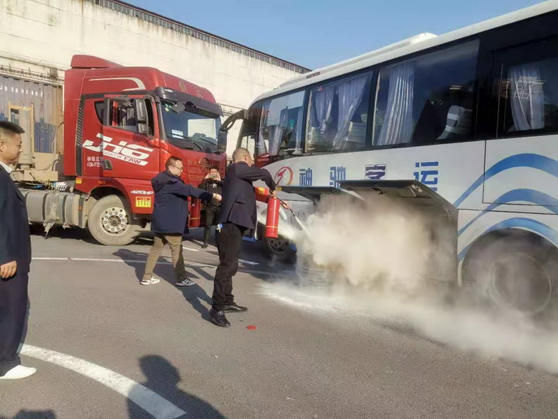 (演练模拟两车相撞后导致旅客受伤、驾乘人员发生纠纷后行凶,车辆漏油起火)