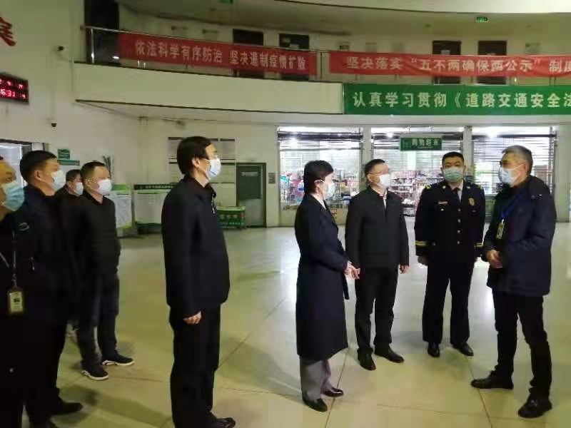 检查过程中,李市长先后来到我站售票厅、候车室,出站口等安全重要节点,详细询问了安全生产部署与落实情况以及今年的春运客流情况,并查看了防疫工作落实情况和站场源头安全把关及司机安全教育情况。在肯定我站工作质量的同时,更多的是给我们提出了要求,并再三强调:在客源严重下滑的情况下,一定要士气不减,坚持底线思维,坚持安全防疫工作常态化管理,要始终把人民群众生命财产安全放在心中最高位置,确保广大人民群众渡过一个安全、欢乐、祥和的牛年春节。