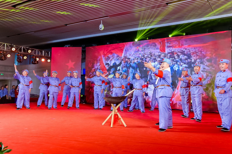 情景歌舞剧《百年辉煌》以《毛委员和我们在一起》开篇,讲述了以毛泽东同志为领导的中国共产党人,从中国革命具体实际出发,创建人民军队、建立革命根据地,确立“农村包围城市、武装夺取政权”中国式革命道路的光辉历程。第二幕《绣红旗》再现了以江姐为代表的优秀儿女,将生死置之度外的革命英雄主义气概和理想信念坚定、誓将革命进行到底的革命乐观主义精神。第三幕大合唱《不忘初心》,展示了共产党人始终坚持为人民服务宗旨,初心不改、矢志不渝的坚定理想信念,也唱出了神驰人勇于开拓、筑梦未来,决心转型升级再创辉煌的使命担当。百年峥嵘,百年辉煌,正是因为始终坚持实事求是,将马克思列宁主义中国化;正是因为无数先烈抛头颅、洒热血;正是因为全体共产党人不忘初心、牢记使命,才有中国人民站起来、富起来到强起来的飞跃,才会有中华民族复兴伟大梦想的实现,这就是音乐情景剧的鲜明主题。