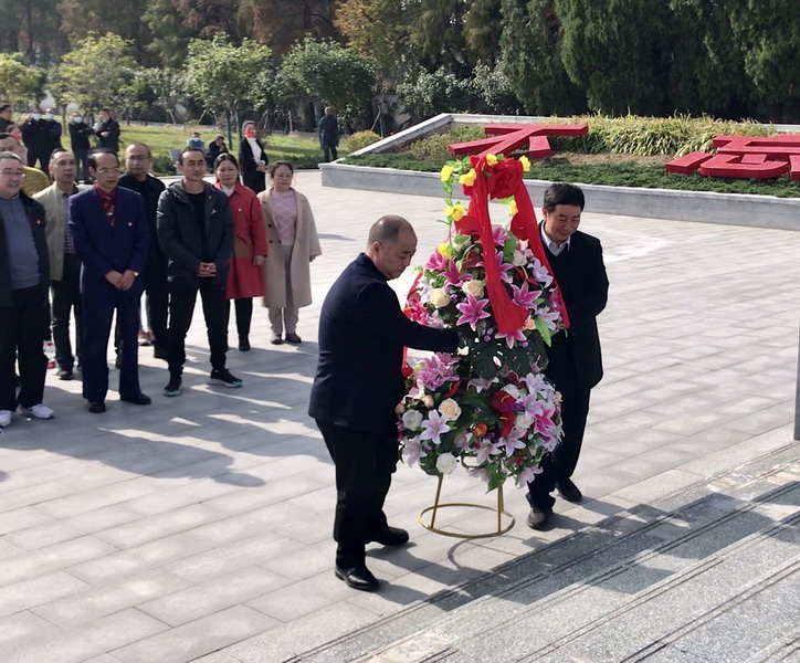 位于瞿家湾老街后方的湘鄂西苏区瞿家湾革命烈士陵园,青松翠绿,庄严肃穆。机关党员怀着无比崇敬的心情,列队走进烈士陵园,开展为烈士献花与重温入党誓词等主题活动。在高耸的革命烈士纪念碑前,胡太勋、张怀国同志为革命烈士敬献花篮,全体党员面向纪念碑三鞠躬,表达对革命先烈的崇高敬意和深切缅怀。随后,在机关支部书记王惠敏领誓下,全体党员面对鲜红的党旗,庄严地举起右拳,用铮铮誓言彰显共产党员的永恒初心。最后,党员们有序列队、绕碑一周,瞻仰革命烈士纪念碑,圆满结束了当天的主题党日活动。