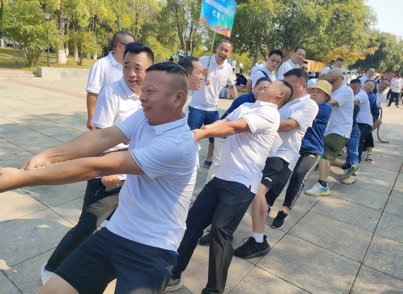 上午10时20分左右,全体队员经南湖广场、天灯映月、九孔桥、长堤烟柳、九龟湾等景点,到达终点圣安寺景区。随后,随着裁判员哨声响起,拔河比赛正式拉开序幕,我司10名男女队员紧握长绳,跨步站稳,咬紧牙关,劲往一处使、心往一处聚,集团公司领导和参加健步行的干部员工热情为参赛队员加油助威,掌声、欢呼声此起彼伏。一根在中心线边缘来回晃动的红绳,完美的诠释了队员们昂扬的斗志和团结的力量,最终在大家的努力拼搏下,龙骧神驰在首轮比赛中取胜,并获得了优胜奖的较好成绩。