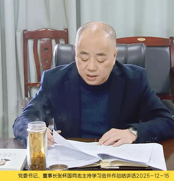 会议最后,党委书记、董事长张怀国作了《深学深悟、常学常悟、真学真悟——切实把学习成果转化为做好“岁末年初”各项工作的强大动力》的总结讲话。