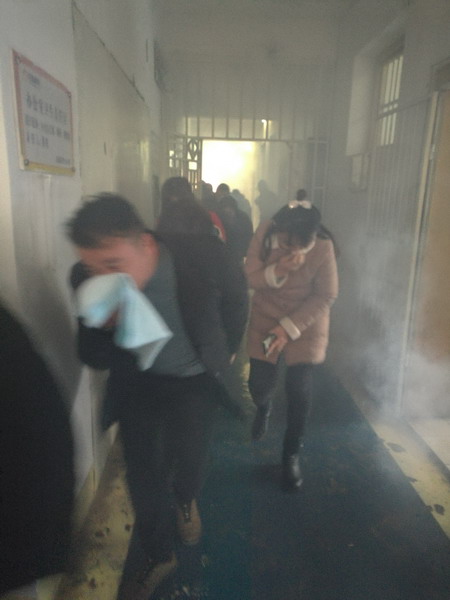 培训结束后,全体员工及部分租户在分公司办公楼开展消防疏散逃生演练。随着“火情”发生,“浓烟”开始弥漫,“警报声”紧促响起,所有演练人员迅速冲出房间,用湿毛巾或衣物捂住口鼻,弯腰急步浅呼吸,沿安全通道靠右有序撤离;四名抢险救援人员手提灭火器采取行动,对“火情”实施扑救,防止蔓延。整场演练井然有序,撤离时间约为15秒。此次疏散逃生演练不仅提高了员工和租户应对、处置突发火灾事故的能力,同时还进一步掌握了逃生自救的基本方法,增强了大家的消防安全意识,整个演练达到了预期目的。