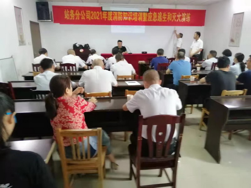 为增强站务人员的消防安全意识,进一步提升全员应急逃生和灭火应急能力,站务分公司于2021年5月14日上午举办了2021年消防安全知识培训暨应急逃生及灭火演练,参与培训的有站务分公司全体行管人员及各车站消防安全内保人员共计40余人。