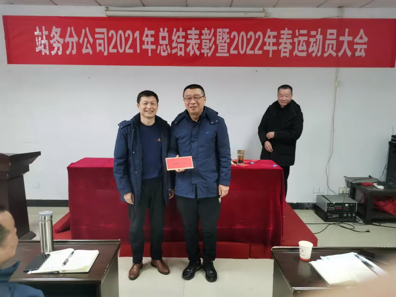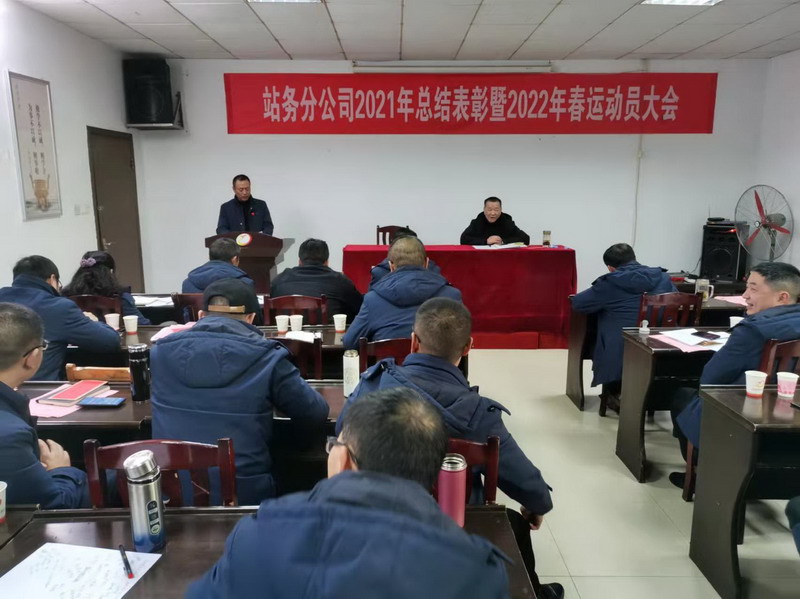 站务分公司2021年总结表彰暨2022年春运动员大会于1月11日下午在洞庭汽车站二楼会议室召开。分公司领导及各车站班子成员、机关各科室长共计35人到会,会议由总支书记李辉主持。