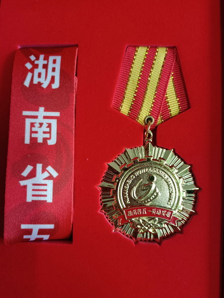 2022年4月22日上午,集团公司纪委书记、监事会兼工会主席许峰、副总经理王斌率党群工作部、安全机务保卫部负责人一行,来到客运分公司,为“湖南省五一劳动奖章”获得者邓险颁发荣誉证书和奖章。