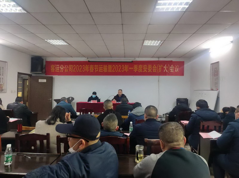 为认真贯彻集团公司2023年春节运输暨2023年一季度安委会会议精神,切实做好客运分公司2023年春运安全生产。元月6日下午,分公司在二楼会议室召开2023年春节运输暨2023年一季度安委会大会,分公司领导、机关科室长、各队、站(厂)班子成员近50人与会,会议由党总支书记刘宁华主持。