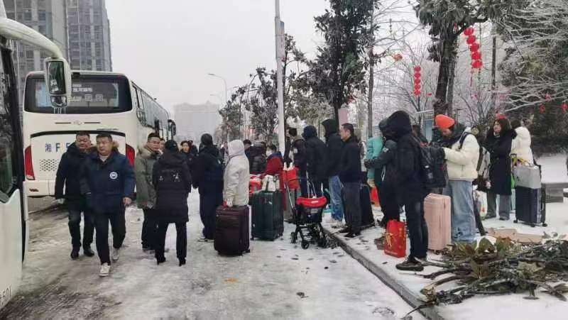 近期,大范围持续雨雪冰冻天气,导致道路积雪结冰严重,广大旅客出行受到严重影响。为彰显岳阳文明形象,让旅客渡过安乐祥和的春节,2月4日,旅游分公司积极应对,措施给力,司机执行到位,在公交车连续三天停运的情况下,调整运力,安全圆满地完成了滞留在市奥体中心春节返乡的旅客疏运任务。
