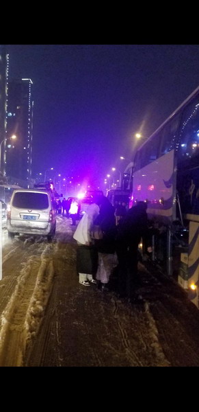 当日下午17:00,受雨雪冰冻天气影响,湖北部分地区高速封路, 400多名旅客滞留在岳阳汽车东站,按市政府及交通运输局统一组织部署,大部分旅客临时转送至市奥体中心,然后由集团公司统一安排,转运返乡。为此,旅游分公司立即召开紧急调度会议,提前布防,及时准备了防滑链条,柴油防凝结添加剂。同时,抽调11位作风优良、技术过硬的驾驶员,参加转运湖北方向的旅客。