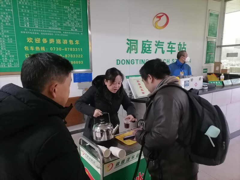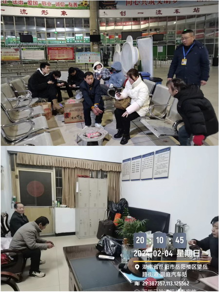 2月4日,因恶劣天气造成岳阳高速辖区收费站交通管制,根据岳阳市应急管理指挥部指令,客运分公司所有站场关闭,所有车辆停运。致使各个车站都滞留了很多乘客,客运分公司工会主席李颜组织车站员工开展送温暖,安抚乘客等活动,天气降温但服务不降温。