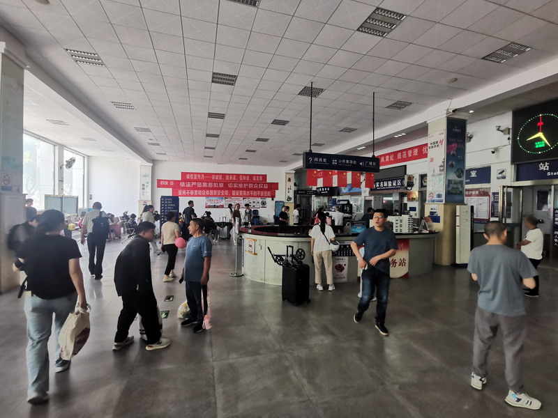 随着太阳升高,车站内人声鼎沸。值班站长李宏兵穿梭在人群中,脸上始终挂着如沐春风的笑容。