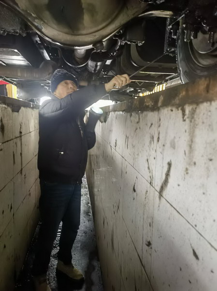 “宁可备而无用,不可用而无备”,这是徐兵刻在工作里的箴言,更是他应对极端天气的底气所在。预警发布的深夜,他舍弃休憩时光,伏案深耕,连夜细化完善《雨雪冰冻天气客运安全应急预案》,从车辆管控、路况巡查到旅客疏导、应急救援,逐一厘清责任、优化流程,让每一步应对都有章可循、落地有声。而后,他顶着刺骨的寒风,躬身钻进车辆检修区,逐台核查除冰剂、防滑链、三角木等应急物资,用指尖抚过轮胎、制动系统、灯光线路等关键部件,不放过任何一处隐患、不遗留一丝疏漏。当排查出3台车辆制动间隙超标、暗藏风险时,他当即下达整改指令,全程蹲点督办、反复复核,直至凌晨两点,圆满完成65台运营车辆的全方位“体检”。并连夜组织驾驶员开展冬季安全行车专题培训以及冬季典型事故警示教育。以极致严谨,筑牢了抗冰保通的第一道安全屏障。