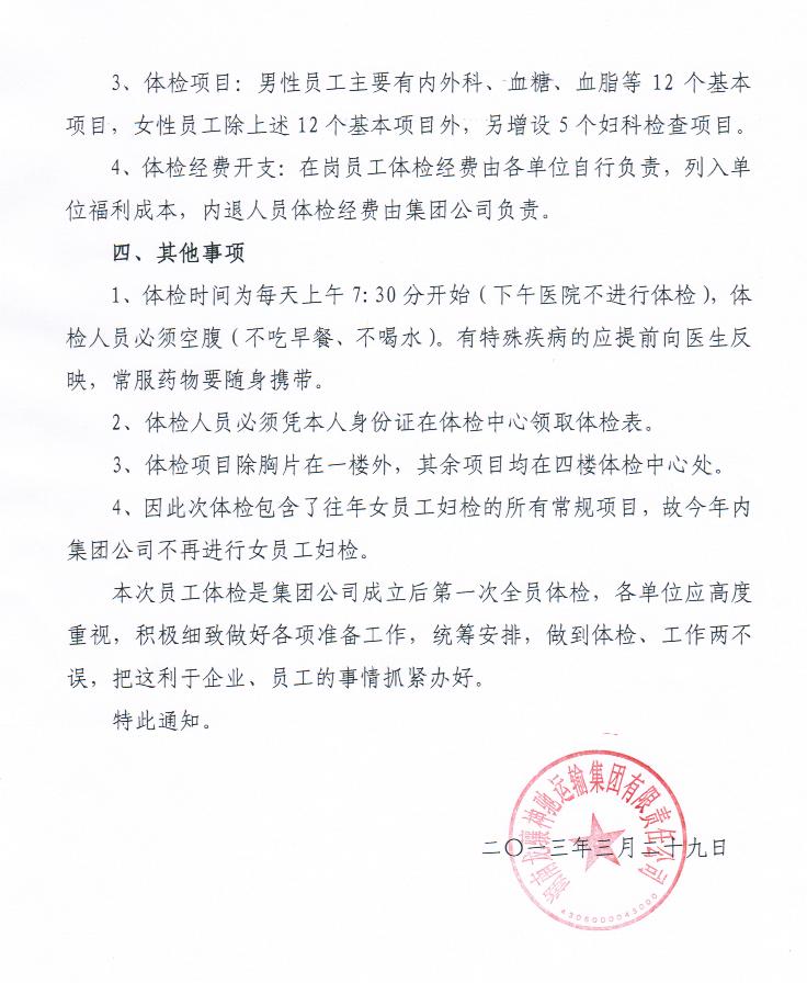 关于员工体检的通知