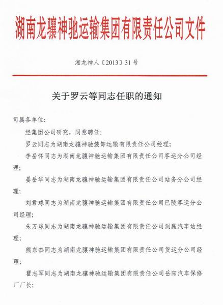 关于罗云等同志任职的通知