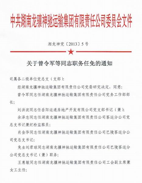 关于曾令军等同志职务任免的通知
