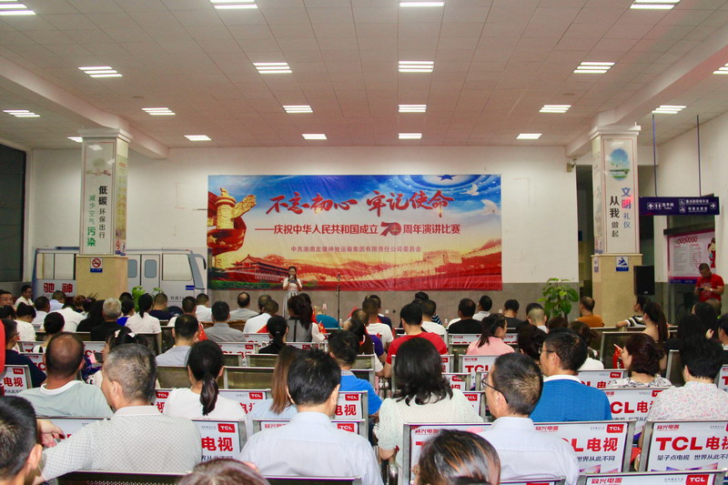 辉煌七十载,举国同欢庆。9月29日晚,岳阳汽车站候车室内灯火通明,济济一堂,掌声、欢呼声不断,一派喜庆、热烈的气氛。集团公司党委在这里举办“不忘初心、牢记使命”演讲比赛,隆重庆祝中华人民共和国成立70周年。集团领导、机关部室长、二级单位班子成员、党群科长以及基层单位党支部书记、公司员工等150余人参加了庆祝活动。