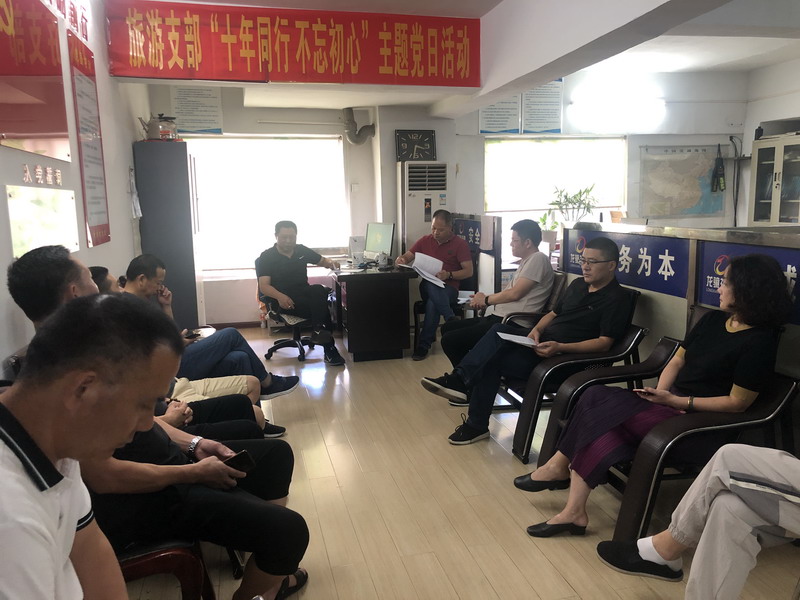 7月22日下午,旅游分公司党支部组织开展“十年同行,不忘初心”主题党日活动,除1名党员出班外全体党员参加,支部书记曹云蓝主持活动。
