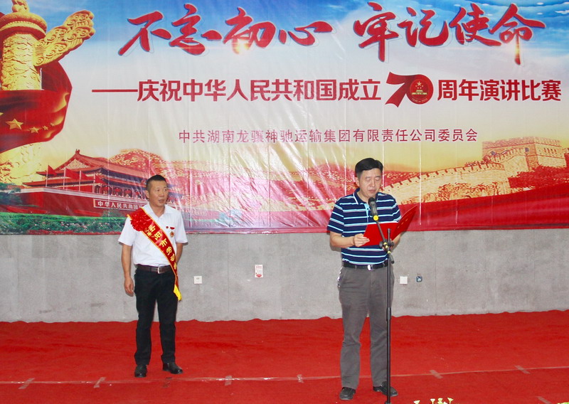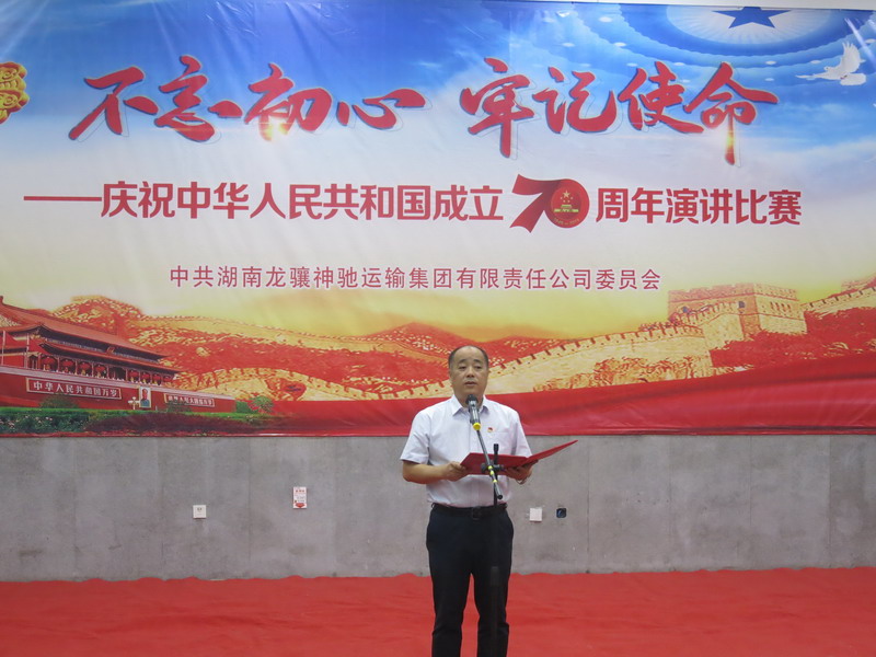 集团公司董事长张怀国首先致辞。他代表集团党政工班子,向全司干部员工及家属致以节日的祝福,并向节日里坚守在一线的全体员工致以诚挚的问候。他指出,70年栉风沐雨、70年沧桑巨变,我们的祖国创造了人类发展史上的伟大奇迹,龙骧神驰近60年来每一步发展都无不与国家的发展进程同频共振。今年以来,公司股代会、党代会、职代会先后胜利召开,全司员工紧紧围绕股代会确定的工作总基调和总体战略,正视现实、坚定信心,致力于企业转型升级和创新发展,确保了各项工作有序推进,举办演讲比赛等活动,正是激励全司员工在转型发展的征程上再冲锋、再攻坚的一次动员。张董事长还就近段工作提出两点意见:一是各级党组织、全体党员干部,要提高政治站位、强化政治担当,严格按照集团公司“不忘初心、牢记使命”主题教育实施方案要求,认真落实各项工作安排;二是全司员工要牢固树立“保安全、保稳定”的责任意识,坚决落实“找隐患、找不足”的工作机制,全面部署“大排查、大整治”的专项行动,坚决确保“黄金周、黄金期”增收创效。
