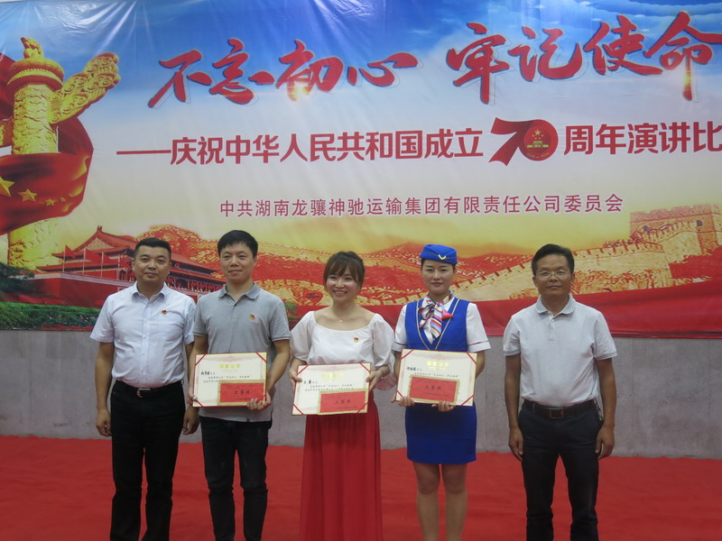 在演讲比赛中,来自各二级单位和机关的14名选手,按照抽签顺序,先后走上演讲台进行角逐。选手当中既有党员干部,也有来自基层一线各个岗位的普通员工,大家围绕“不忘初心、牢记使命”这个主题,或抒发对伟大祖国70年辉煌成就的由衷礼赞;或讲述身边爱岗敬业、诚信服务、模范守纪、勇于担当等先进典型的故事;或结合自身经历,对“初心与使命”的涵义进行了真情实感的阐述。尽管选手们的演讲技巧并不成熟,大部分选手还是第一次登上演讲台,但由于演讲内容选取了本行业、本单位实际题材,“身边事”感染了“身边人”,候车室里不断响起热烈的掌声。通过评委们客观公正的评分,最终,客运分公司陈靖获得一等奖;站务分公司尹晶、集团公司机关喻一帆获得二等奖;旅游分公司赵宇明、运源石油公司王蕾、客运分公司邱佳佳获得三等奖。集团公司党委书记胡太勋,纪委书记、工会主席许峰,副总经理李载良、朱万球,分别为获奖选手颁奖。