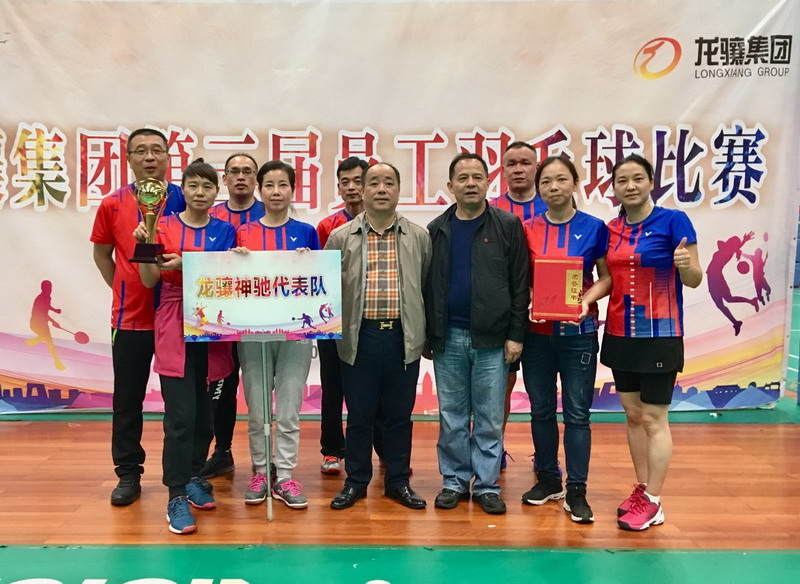 湖南龙骧集团第三届员工羽毛球比赛于2020年10月22日至23日在长沙市雨花区东山全民健身中心举行,由各部门、子分公司组成的14支代表队共计130余人参加了比赛。龙骧神驰集团从公司员工羽毛球倶乐部中选拔9人组成代表队,工会主席许峰担任领队,董事长张怀国作为主力队员参赛。