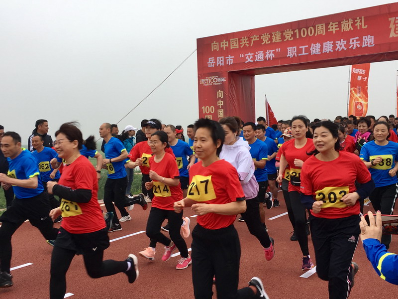 4月26日上午,为庆祝中国共产党成立100周年,岳阳市交通运输局在君山区华龙码头马拉松赛道举行“岳阳交通杯”职工健康欢乐跑活动。来自各县市区交通运输局和市直交通运输系统各单位的260余名干部职工参加了比赛,其中龙骧神驰由14名长跑运动爱好者组队参赛,大家为了集体荣誉而奋力奔跑,取得了多个好名次。