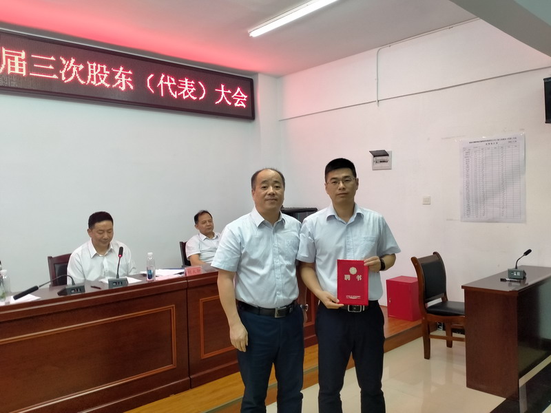 会上,董事、党委书记胡太勋同志代表董事会宣读了三届三次董事会决议,董事长张怀国为新任董事会秘书邓兴兴同志颁发了聘书。