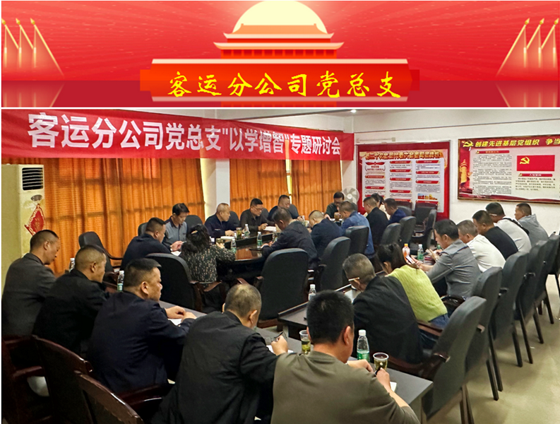 10月26日上午,客运分公司党总支召开“以学增智”专题研讨会,分公司党总支委员、部门科室负责人及各基层单位党政正职共26人参加学习研讨,集团公司副总经理王斌率运输生产、安全机务部门负责人到会指导。