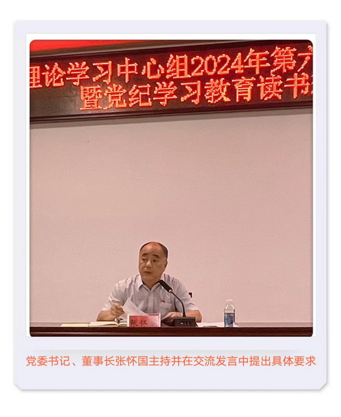党委书记、董事长张怀国在交流发言暨总结讲话中强调:学习党纪要坚定政治立场。学习党纪,就是要增强政治敏锐性和鉴别力,始终做到在思想上、政治上、行动上与党中央保持高度一致。学习党纪要把握精神实质。要通过学习,明确什么是党的纪律,为什么要遵守党的纪律,以及违反党的纪律将受到怎样的惩处。学习党纪要增强党性修养。要通过学习,不断增强党性观念,坚定理想信念,始终保持对党的忠诚和热爱。