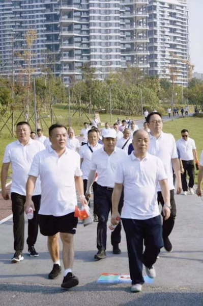 在首先进行的健步行活动中,龙骧神驰旗手高举旗帜,大家穿着统一服装,昂首阔步、精神抖擞、兴致勃勃,迈着矫健的步伐,在运动中放松心情、增进感情、释放激情,充分展现了龙骧神驰干部员工团结奋进、昂扬向上的精神风貌。