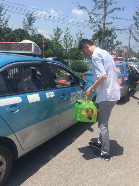 送考中,驾驶员们放弃节日的团聚和营运时间,在约定好的时间之前半小时到考点等候,公司为每台“爱心送考”车辆准备了粽子、皮蛋、咸蛋、纸巾、矿泉水等物品。