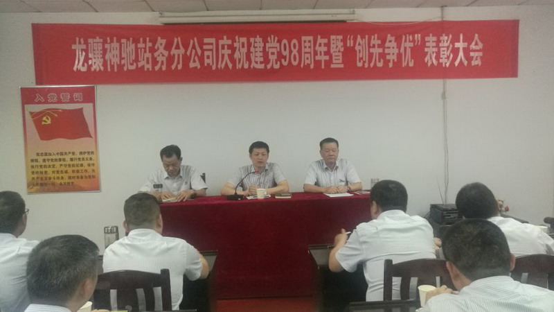 会议首先由分公司党总支书记李辉同志率领全体与会党员重温入党誓词。会上,李辉书记代表分公司党总支,向辛勤工作在全司各岗位的广大党员致以节日问候,向获得集团公司和站务分公司先进党支部、“党员示范岗”荣誉称号的集体和先进个人表示祝贺,并号召全司广大党员干部以先进典型为榜样,履职尽责创先进,立足岗位争优秀。李辉书记在讲话中还就过去一年来,站务分公司党总支在集团公司党委的正确领导下,在党的组织建设、员工教育培训、党风廉政建设、创先争优活动开展以及关心关爱员工等方面取得的成绩作了简要回顾。并就后阶段党建工作进行了具体安排。