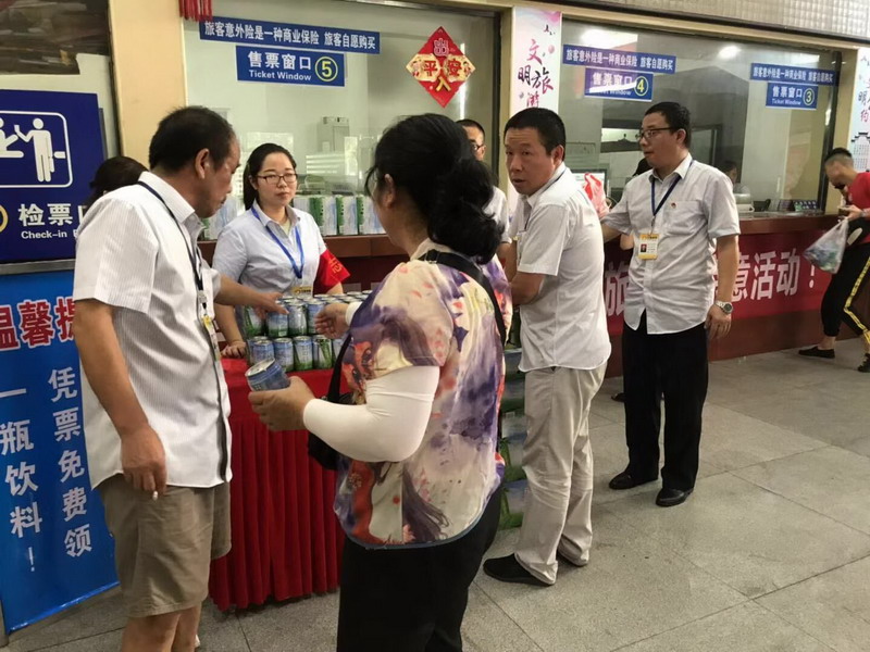 旅客们在接过清凉解暑茶后纷纷表示:“现在天气炎热,一出门,人就受不了,车站能给旅客送来一杯清凉茶,真是关怀备至,要给你们一个大大的“赞”!”