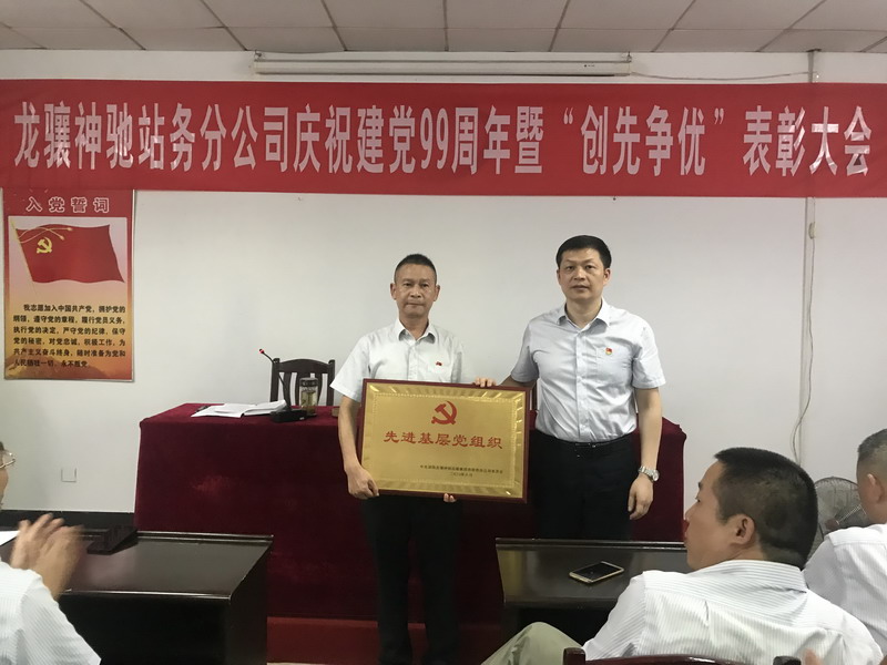 分公司副经理李颜宣读了集团公司及站务分公司的表彰决定。分公司经理李渡江为受到集团公司表彰的“先进基层党组织”授牌,副经理李世爱、董军为获得站务分公司“优秀共产党员”颁发荣誉证书并发放政治生日卡。