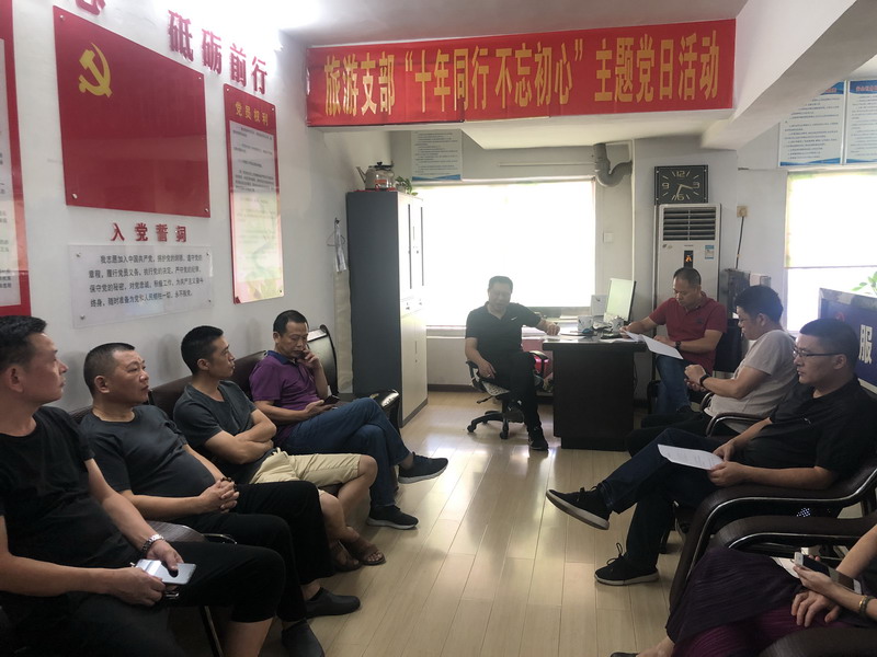 7月22日下午,旅游分公司党支部组织开展“十年同行,不忘初心”主题党日活动,除1名党员出班外全体党员参加,支部书记曹云蓝主持活动。