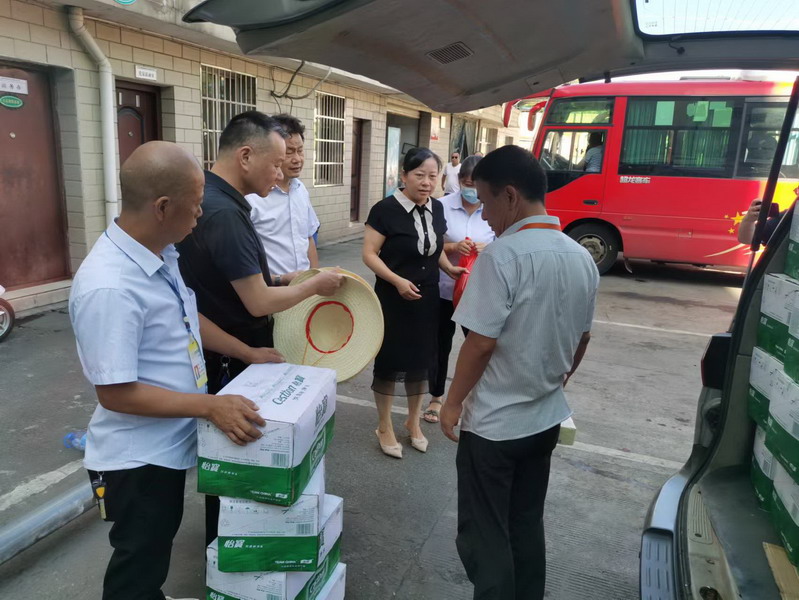 为做好一线员工防暑降温工作,7月22日上午,站务分公司党政工代表一行结合近期开展的“四亮”主题活动,组织了一场“夏日送清凉”活动,为辛苦忙碌在一线的车站工作人员送去了十滴水,凉茶,草帽,矿泉水等防暑降温物资。