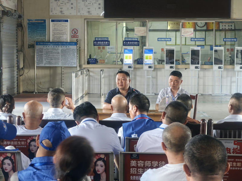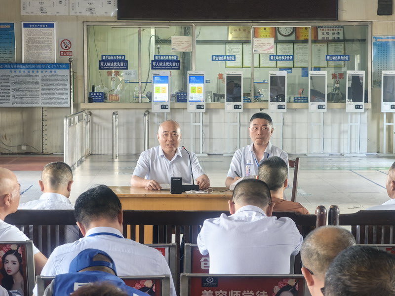 会上,贺忠敏站长就提升站场管理服务作了安排和要求;分公司副经理冯伟就规范车辆营运行为、净化周边营运环境作了要求和说明;集团陶雷部长提出了两点要求:进一步提升服务管理水平、进一步规范导乘及营运行为。