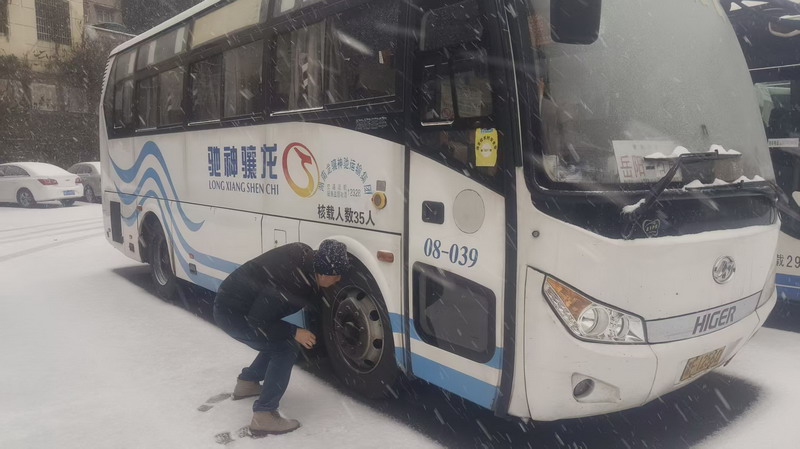 “宁可备而无用,不可用而无备”,这是徐兵刻在工作里的箴言,更是他应对极端天气的底气所在。预警发布的深夜,他舍弃休憩时光,伏案深耕,连夜细化完善《雨雪冰冻天气客运安全应急预案》,从车辆管控、路况巡查到旅客疏导、应急救援,逐一厘清责任、优化流程,让每一步应对都有章可循、落地有声。而后,他顶着刺骨的寒风,躬身钻进车辆检修区,逐台核查除冰剂、防滑链、三角木等应急物资,用指尖抚过轮胎、制动系统、灯光线路等关键部件,不放过任何一处隐患、不遗留一丝疏漏。当排查出3台车辆制动间隙超标、暗藏风险时,他当即下达整改指令,全程蹲点督办、反复复核,直至凌晨两点,圆满完成65台运营车辆的全方位“体检”。并连夜组织驾驶员开展冬季安全行车专题培训以及冬季典型事故警示教育。以极致严谨,筑牢了抗冰保通的第一道安全屏障。