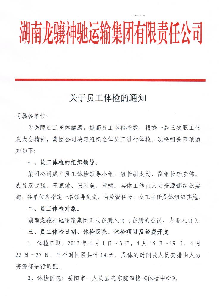 关于员工体检的通知