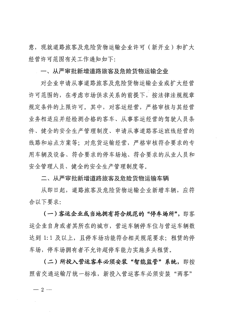 关于道路旅客及危险货物运输企业许可有关工作的通知