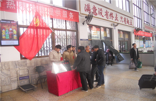 元月十六日,春运的第一天,站务分公司团支部积极开展春运志愿者服务活动。在岳阳汽车站售票厅, 志愿者们热情主动为旅客提供客购票咨询、免费送水、送晕车药、泡方便面、运送行李等便民、暖心服务。他们的行动赢得了广大旅客的满意和微笑,也营造了“情满旅途”的温馨氛围。
