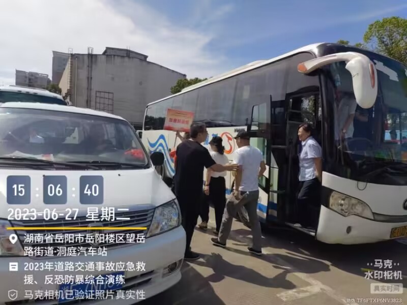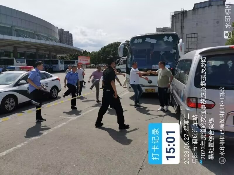 2023年6月27日下午3时,湖南龙骧神驰运输集团有限责任公司2023年道路交通事故应急救援、反恐防暴处置综合应急演练在客运分公司洞庭汽车站车坪内成功举行。