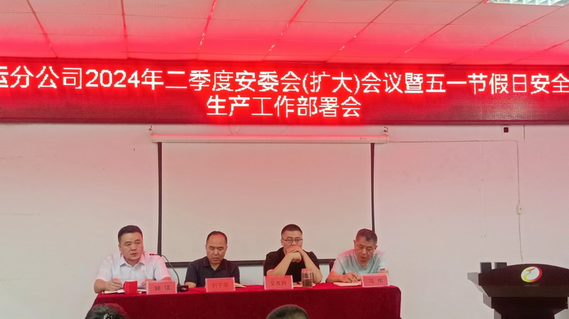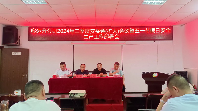 2024年4月28日上午,客运公司2024 年二季度安委会(扩大)会议 暨五一节假日安全生产工作部署会在二楼会议室召开,公司领导班子成员,机关各科室负责人,司属各站(队、厂)主要负责人、书记、分管安全、生产负责人共38人参加会议,会议由公司安全副经理钟瑛主持。
